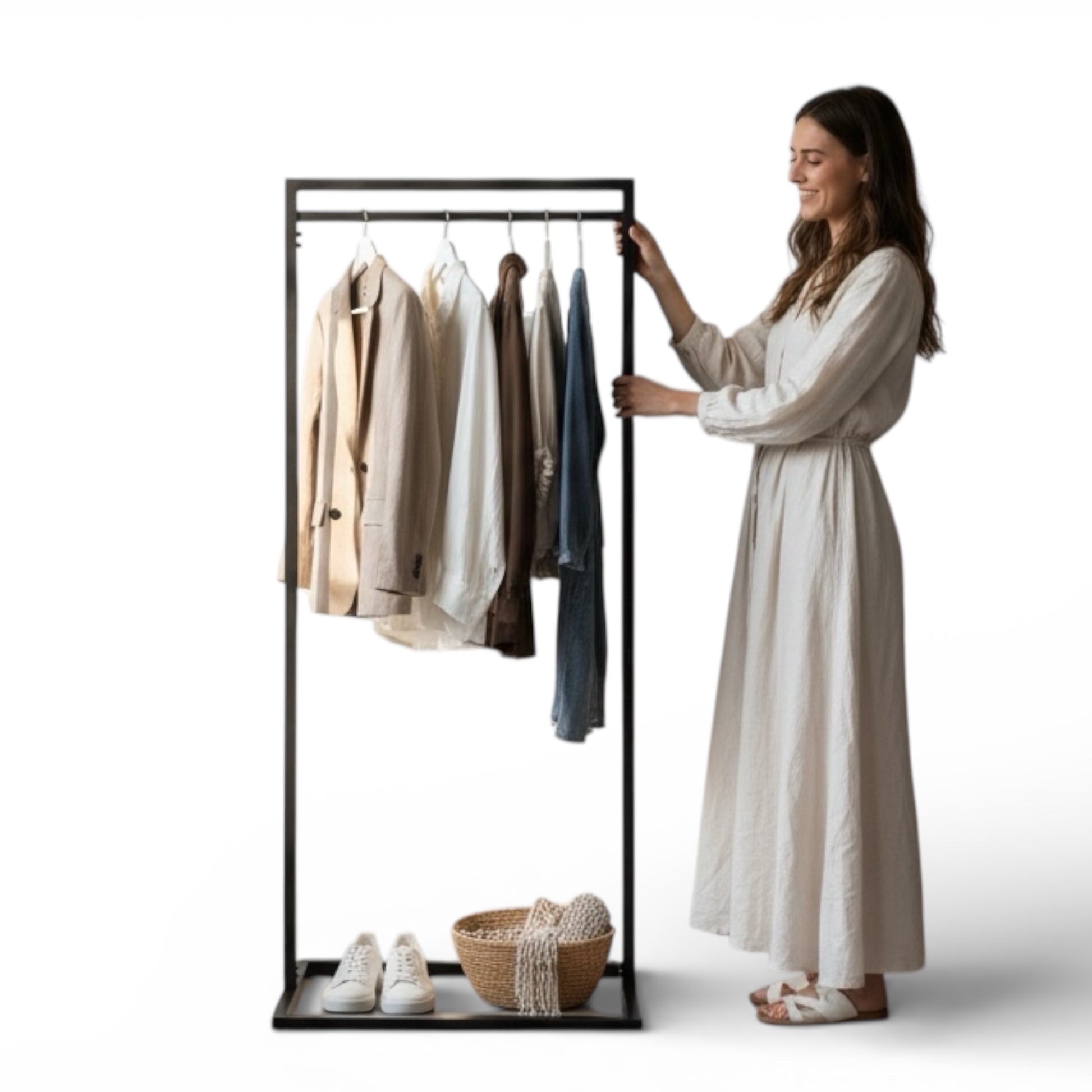 Garderobestativ, sort, B80 x D50 x H140 cm. Tøjstativ Frame