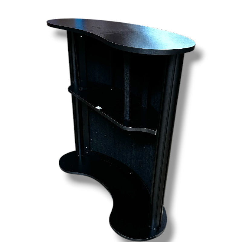 Lítil snjöll skífa í bogaformi. Gott til móttöku eða á sýningum. Skífuna er í svörtu með framhlið úr hljóðeinangrandi plötu/viðarlögn. Mál: B104 x D43 x H105. SPECIALPRIS