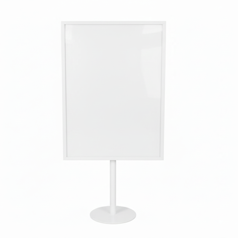 Vör klassíski matseðlahaldari okkar í málmi á traustri hringléttri málmfót. Matseðla- eða skiltiðarfangurinn okkar hentar öllum gerðum skilti. Hvort sem um er að ræða lamið skilti, skilti með plasthólfum, pappír eða pappa, má setja það í matseðlahaldarann. Fótarinn er með fasta hæð upp á 19 cm, en hann má gera allt að 15 cm hærri með aukahluta. Við mælum einnig með að bæta við plasthólfum til að vernda pappírsskilt gegn slitnaði og óhreinindum. Galvaniseruð útgáfan hentar sérstaklega vel fyrir útisöluborð þar sem hún þolir misjafnt veður.