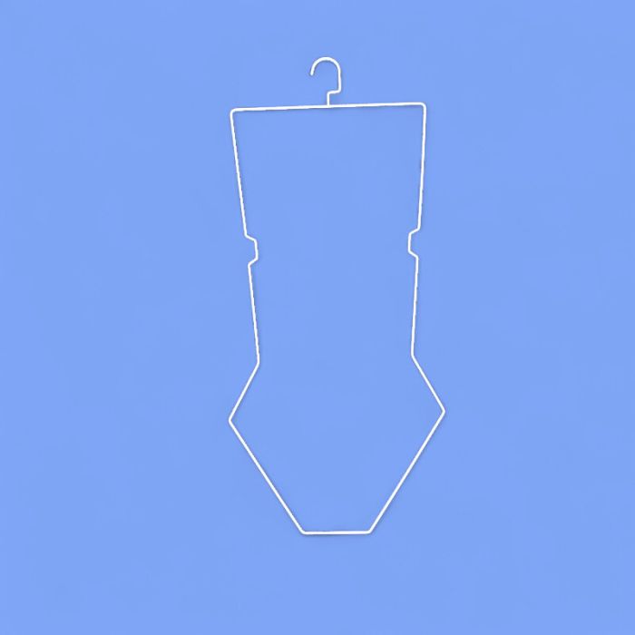 Nærföt og sundföt – Hvít, 38 x H85 cm. Málma / vír herðatré, fullkomið til að sýna nærföt, bikiní og sunddress. Frábært til notkunar í gluggasýningum og á framställum. Mál: 38 cm breitt x 85 cm hátt. Föst málm herðakrókur. Hvít málning