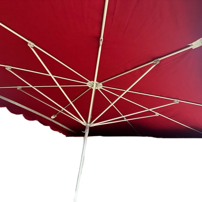 Sólhlíf í rauðu, án fótstangs Hæð 2,4 metrar. Trefill 3,5x2,4 metrar. Stöng Ø3,5 cm. Rauð kápa.