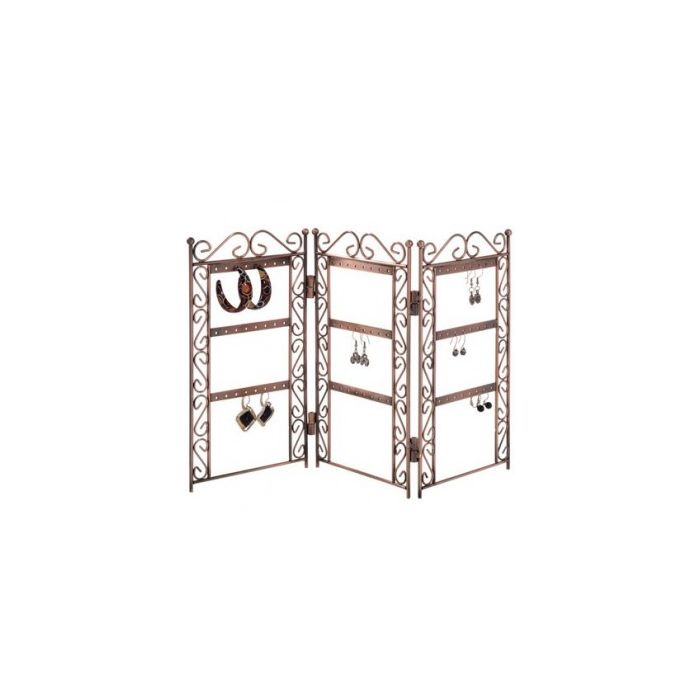 Þetta fallega eyrnastikks-sýningardisplay í koparlitun er fullkominn háttur til að sýna allt að 36 pör af eyrnalokkum. Displayið hefur þrjár flögnir og hentar einstaklega til að draga fram eyrnalokka í búðarglugga eða á sýningaborði. Með breidd upp á 26 cm og hæð 45 cm er þetta display bæði fágað og hagkvæmt og mun án efa laða að sér athygli viðskiptavina þinna. Alls fyrir allt að 36 eyrnastikka. H45 cm.