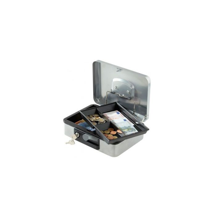 Peningakassi 25 x 18 x H9 með lykli. Grátt. 3 hólf