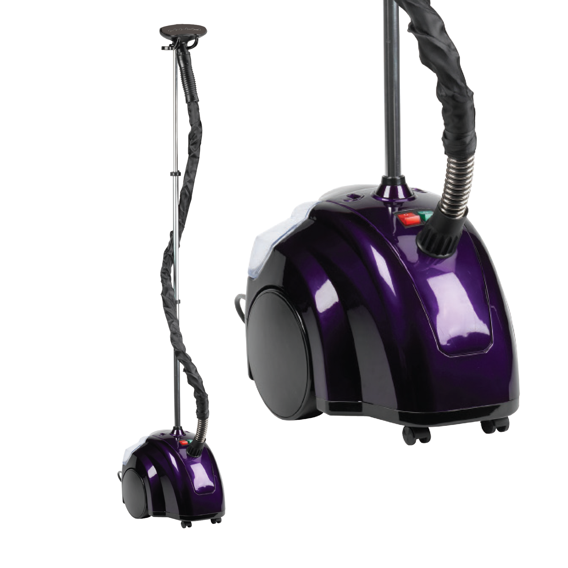 Quick Steam II - fatasteymeri fyrir föt með 2 hraðastillingum. Hentar litlum verslunum. Það hefur stórt 1,9 lítra vatnstank sem gefur allt að 1 klukkustund samfellt notkun. Innifalið plastmunnstykki og burst. Eiginleikar:– Getur steam-að grönn efni– Plasthaus með aftengjanlegri bursta til að steam-a flauel– Sýnilegur vatnstankur - Auðvelt að sjá vatnsmagn. Vatnið hitnar í rás í sjálfum steamernum. Þess vegna hitnar vatnið hratt. Það þýðir að kalk safnast upp í rör og þarf að afkalkast reglulega. Plastskel á steamer.