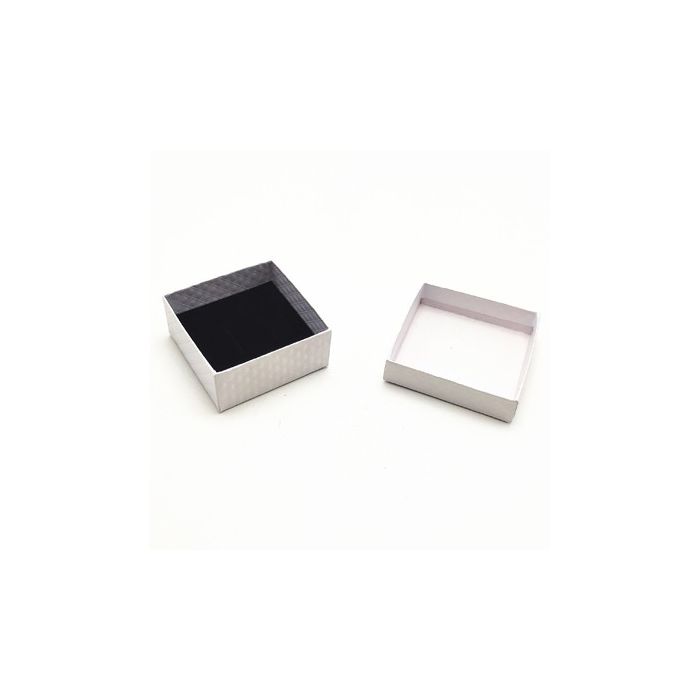 Fatahúðaðar skartgripaöskjur í hvítu. Fallegar öskjur fyrir skartgripi og minni hluti. Mál: B 7,5 x D 7,5 x H 3,5 cm. Hvítt pappír. Sendar með svörtum skumplasti með rifa sem rúmar 1 hálsmen + 1 par af eyrnalokkum + 1 hring. Aftakandi lok. Innanmál kassans: B 6,8 x D 6,8 cm. Hæð milli skums og loks: 2 cm.