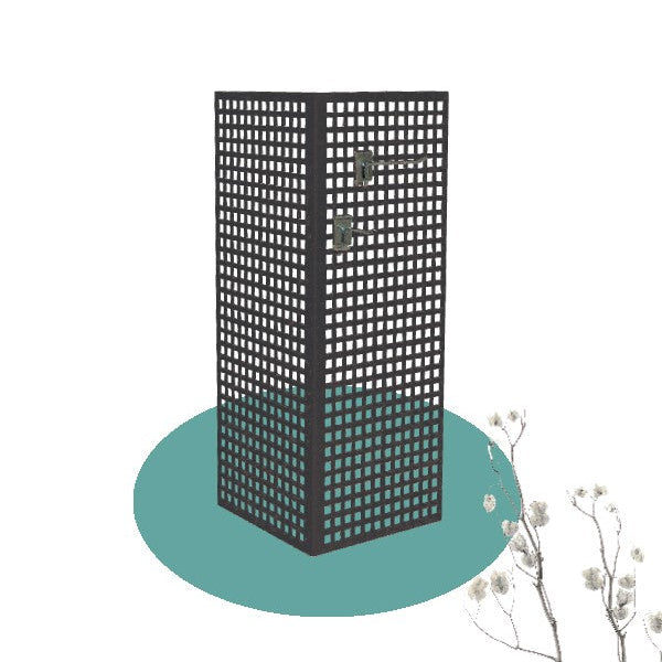Set með 2 svörtum hornskiltum. Og 20 einföld krókar fyrir einu götinu, 5 cm. Hentar sem gleraugnastandur og sýning fyrir smáhluti