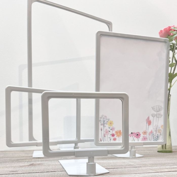 Það er auðvelt að losa skiltarammann og nota hann með öðrum upphengjum frá okkur, röraklemmum, borðstöndum eða hliðarklemmum úr fylgihlutalínunni okkar.